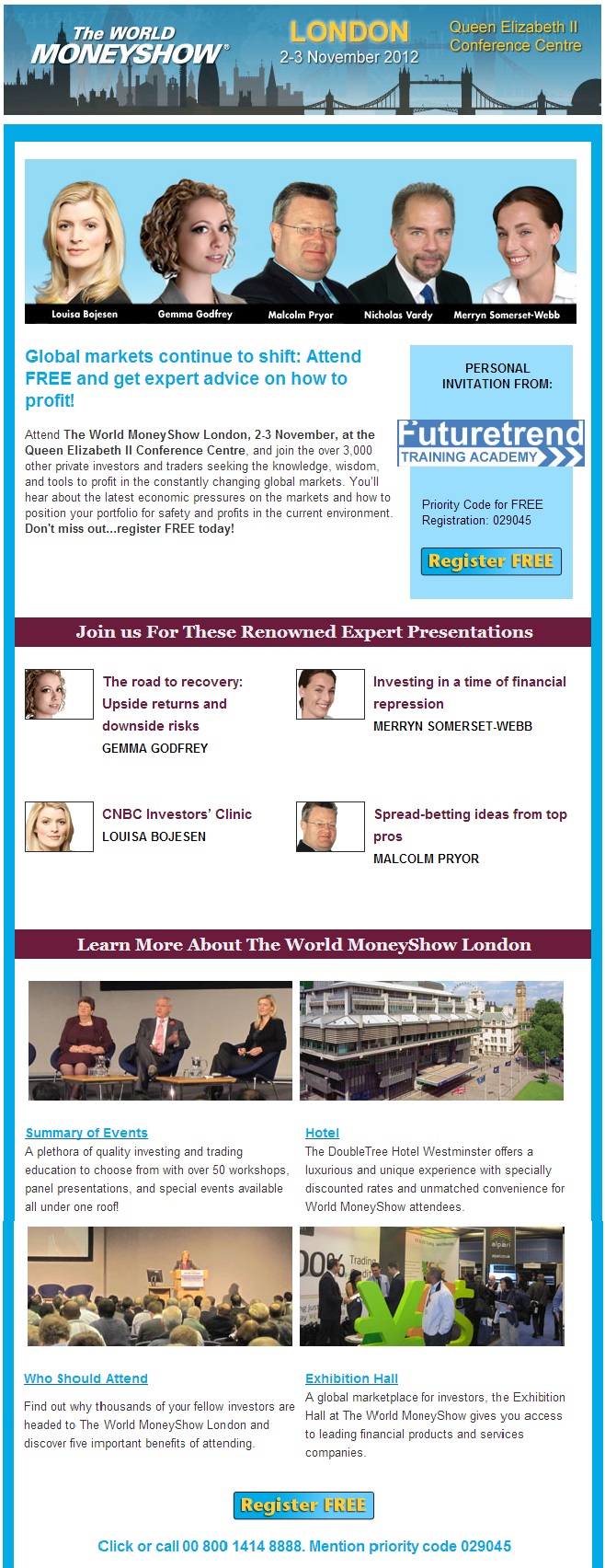 Priority Code for FREE Registration: 029045